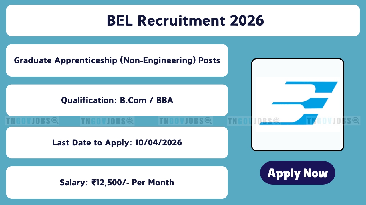 BEL Recruitment 2026: Bharat Electronics Limited (BEL) has released a recruitment notification to fill Graduate Apprenticeship (Non-Engineering) posts. Interested candidates should download the application form from the official website bel-india.in and attend the walk-in interview on 10-04-2026 . Candidates must read the official notification carefully before applying.