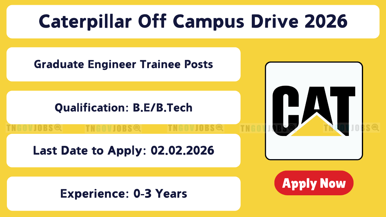 Caterpillar Inc. Recruitment 2026 – Graduate Engineer Trainee (GET) is open for fresh engineering graduates! Location: Aurangabad, Maharashtra. Full-time regular role in Manufacturing. Apply before 02 February 2026. Work on real-world maintenance, infrastructure support & facility engineering in one of the world’s leading heavy equipment manufacturers. Full job description, eligibility & apply details below.