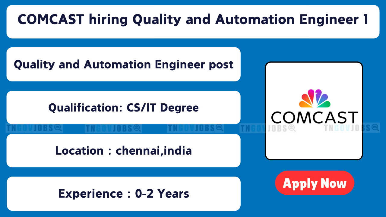 Comcast Recruitment 2026 – Quality and Automation Engineer 1: Comcast is hiring Quality and Automation Engineer 1 (0-2 Years Exp) at Chennai, India. Join a Fortune 50 leader in media & technology!