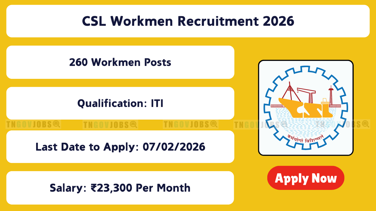 CSL Workmen Recruitment 2026 – Eligibility & Educational Qualification