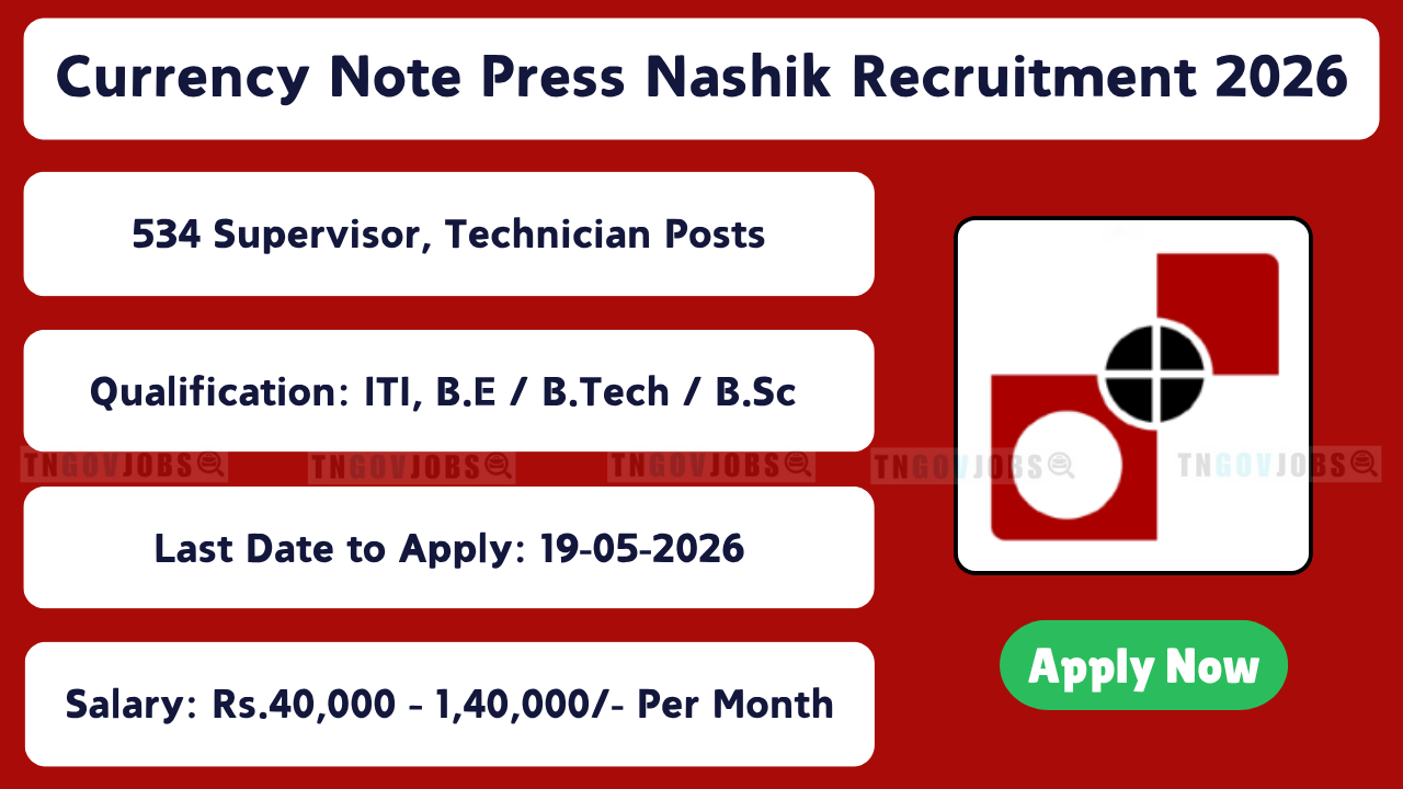 Currency Note Press Nashik Recruitment 2026: Currency Note Press Nashik has released its latest official recruitment notification (Advt. No. CNPN/HR/Rect./01/2026 ) to fill 534 Junior Technician, Supervisor, Assistant & Other Posts . Interested candidates can apply online through the official website cnpnashik.spmcil.com from 20-04-2026 to 19-05-2026 . :contentReference[oaicite:0]{index=0}
