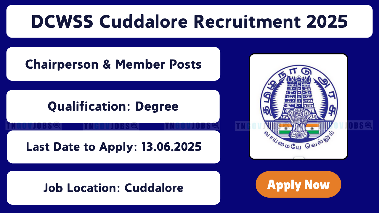 DCWSS Cuddalore Recruitment 2025: The Department of Children Welfare and Special Services (DCWSS) Cuddalore, under the Tamil Nadu Social Welfare Department, has released a notification on 29.05.2025 at Cuddalore.nic.in for the recruitment of various Chairperson and Member posts for the Child Welfare Committee (CWC) and Juvenile Justice Board (JJB) in Cuddalore, Tamil Nadu. Eligible candidates can apply offline by sending applications to the specified address by 13.06.2025 to contribute to child welfare and juvenile justice.