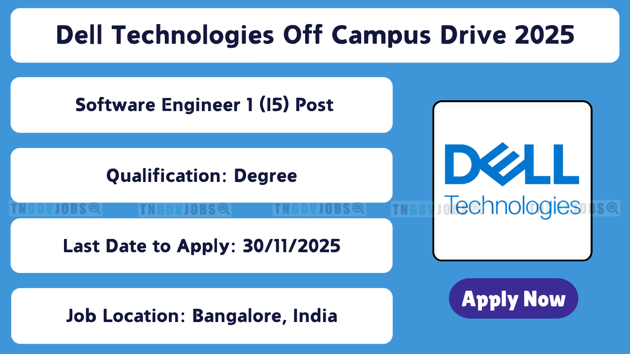 Dell Technologies Software Engineer 1 (I5) Recruitment 2025: Dell Technologies is seeking a Software Engineer 1 to join its Engineering Development team in Bengaluru, Karnataka, India. This role focuses on delivering next-generation application enhancements and products using cutting-edge technologies. Interested candidates can apply online via the Dell careers portal before 30-11-2025. Candidates must review the job details, including required skills, responsibilities, and application procedure.