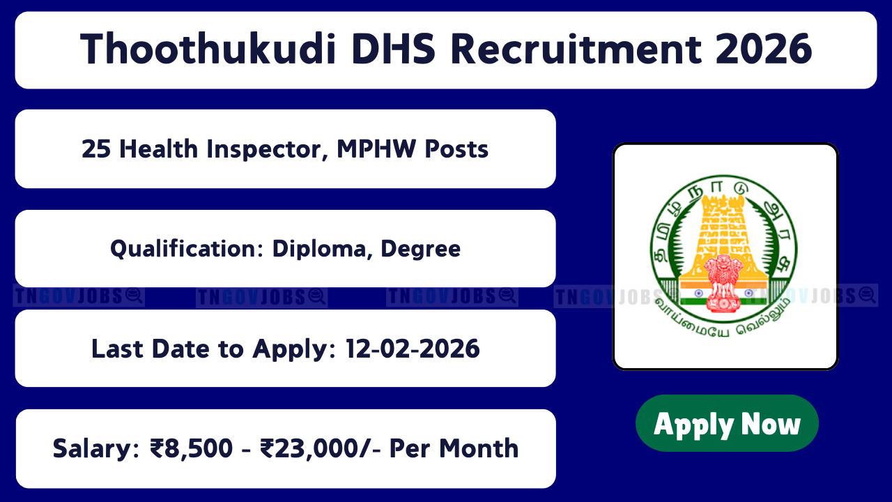 DHS Thoothukudi Recruitment 2026: 25 Health Inspector Posts; Apply Now!