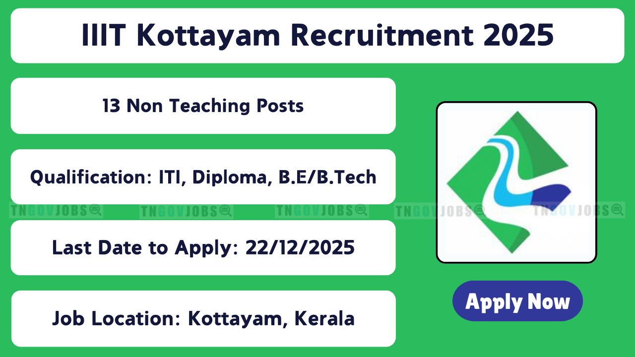 IIIT Kottayam Recruitment 2025: Indian Institute of Information Technology (IIIT), Kottayam has announced Recruitment Notification No: IIITK/01/12/2025/2323 to fill 13 Non-Teaching posts. Online applications will be accepted on the official recruitment portal from 21-11-2025 to 22-12-2025. Candidates must read the official notification carefully and ensure they fulfil the eligibility criteria before applying.