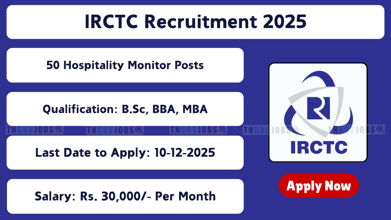 IRCTC Recruitment 2025:Indian Railway Catering and Tourism Corporation (IRCTC) has issued a notification on irctc.com for the recruitment of Hospitality Monitor positions across India. Interested candidates can attend the walk-in interview on 10 December 2025.
