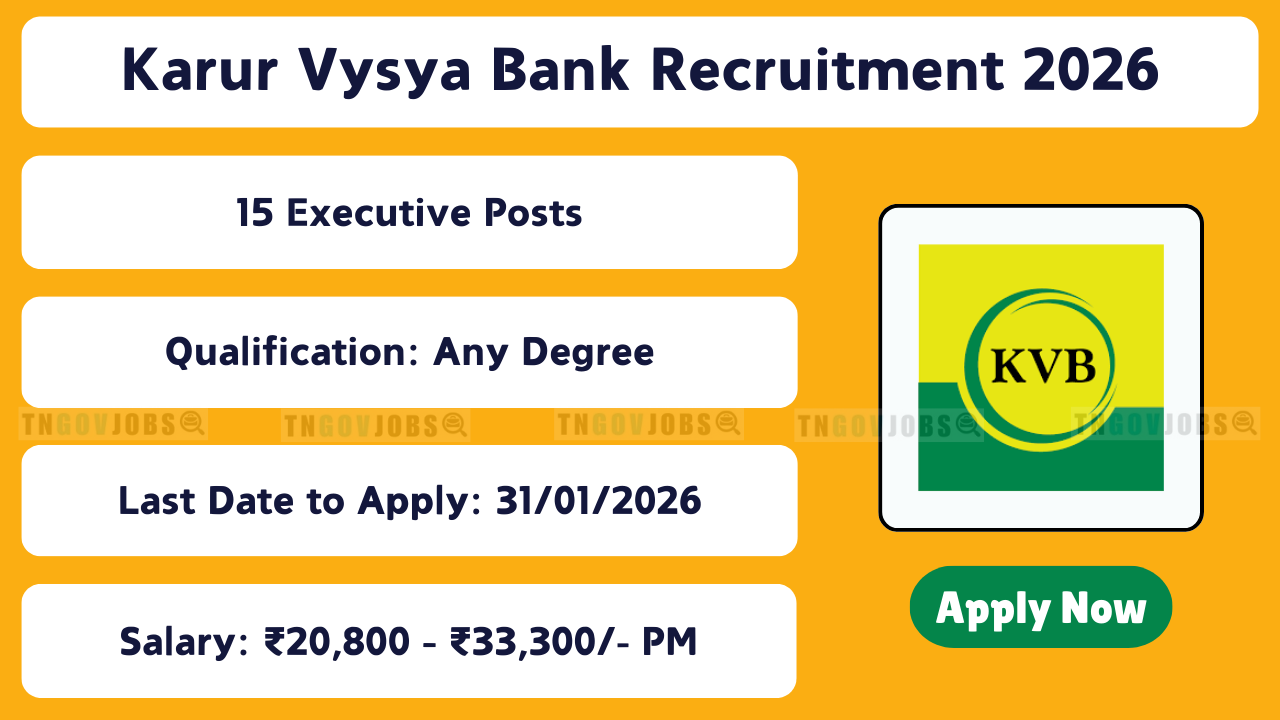 Karur Vysya Bank Recruitment 2026: Karur Vysya Bank (KVB) has released notification for 15 Executive – NCRP (Call Centre) Posts. Freshers with any degree can apply! Apply Online. No Application Fee!