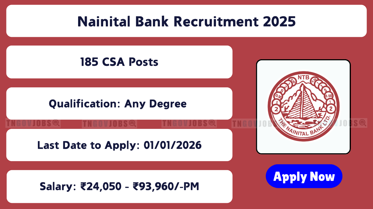 Nainital Bank Recruitment 2025: The Nainital Bank Limited has released notification for 185 Posts (CSA, PO, IT Officer, Law Officer, Credit Officer, etc.) in Scale I & II. Apply Online before 01-01-2026. No age limit specified for some posts!