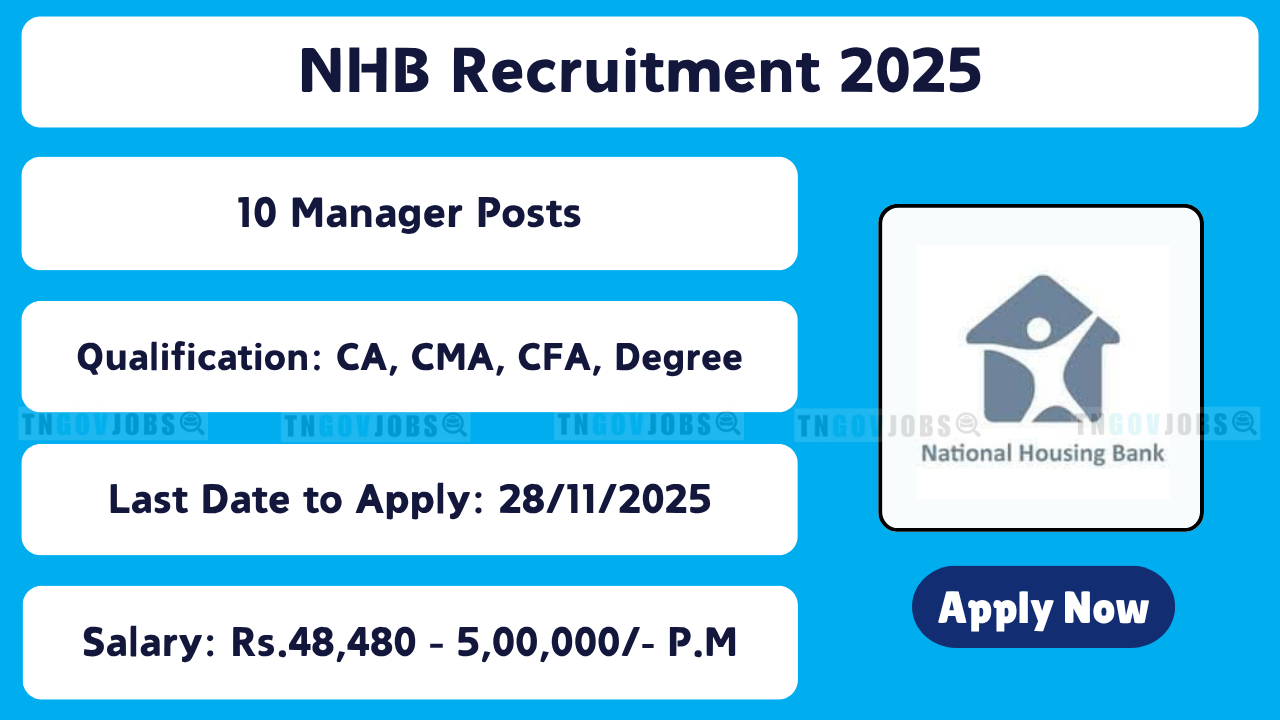 NHB Recruitment 2025:The **National Housing Bank (NHB)** has released a recruitment notification at [nhb.org.in](https://nhb.org.in) for the post of **Manager** across India. Interested and eligible candidates can apply online through the official website on or before **28th November 2025**.