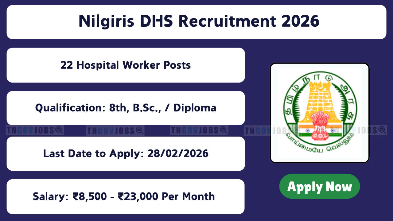 Pro Tip 2026: Nilgiris DHS posts are healthcare-focused – strong domain qualification + complete documents = high shortlisting chance. Hospital Worker has highest vacancies (12) – prepare basic hospital procedures.