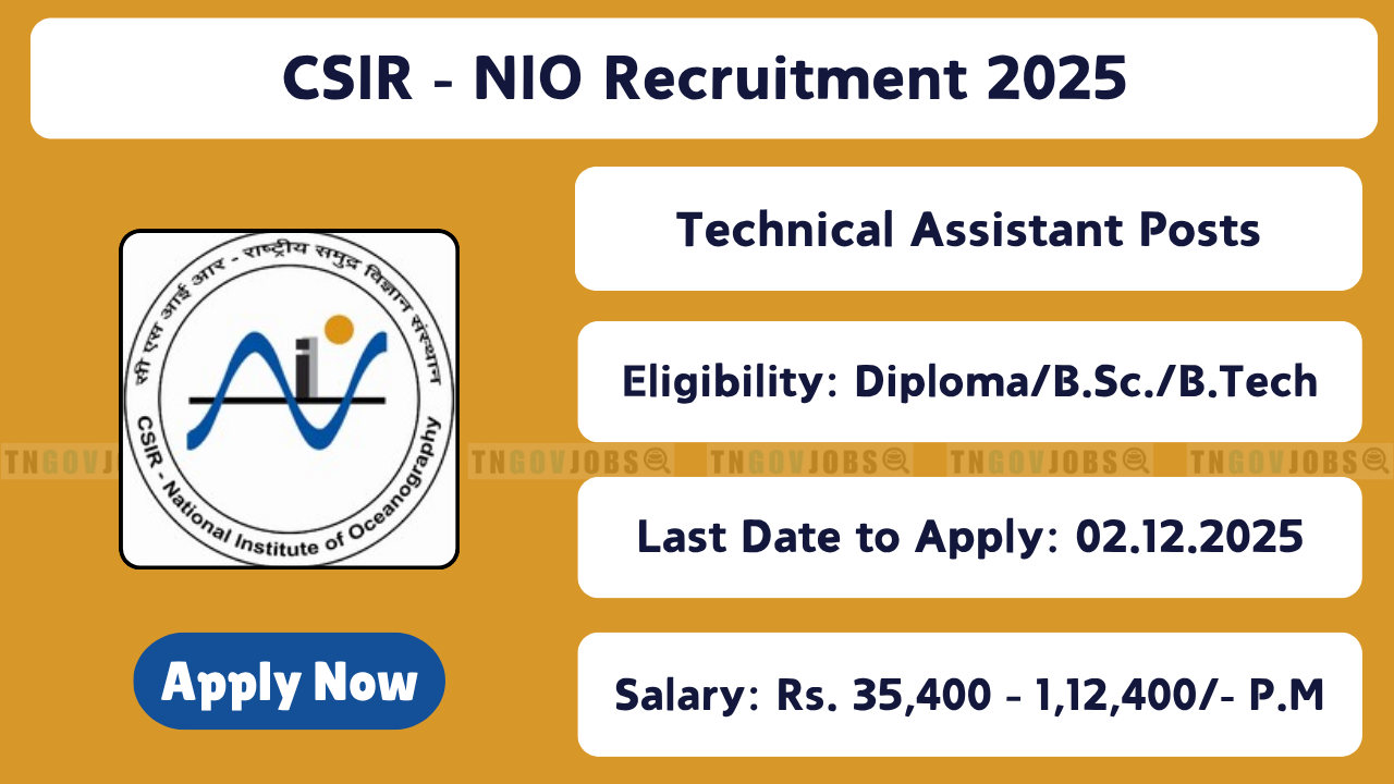 NIO Recruitment 2025: CSIR – National Institute Of Oceanography has released the recruitment notification No: NIO/04-2025/R&A to fill the 24 Technical Analyst Posts. This online facility will be available on the Official website @ https://www.nio.res.in/ from 03-11-2025 to 02-12-2025. Before submitting an application, candidates must carefully read the NIO Technical Analyst 2025 notification and verify their eligibility. Check the NIO Notification 2025 for salary and additional benefits like medical insurance, PF, TA/DA, etc. Applicants must have a working Email Address and Mobile Number that they maintain until the NIO Recruitment 2025 results are announced.