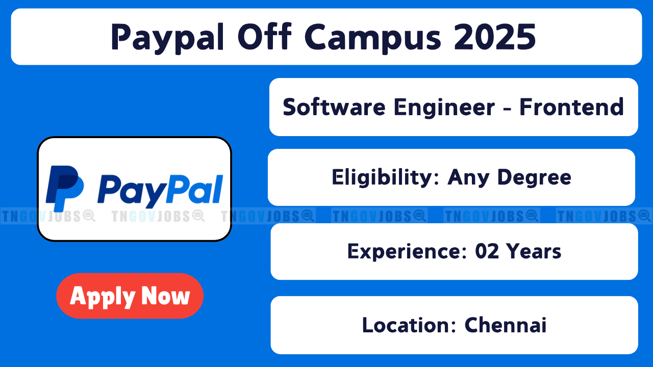 PayPal Software Engineer – Frontend Recruitment 2025: PayPal has released Requisition ID R0129205 for the post of Software Engineer – Frontend in Chennai, Tamil Nadu, India. Interested candidates can apply online before 13-10-2025, 05:30 AM via the official careers website. Candidates must carefully read the job description and verify their eligibility before applying. Check the PayPal Careers website for salary and additional benefits like medical insurance, PF, TA/DA, etc. Applicants must maintain a working Email Address and Mobile Number until the recruitment results are announced.