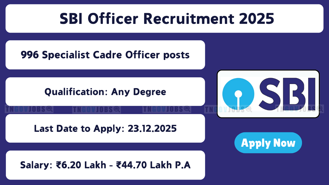 SBI Recruitment 2025: State Bank of India (SBI) has released notification for 996 Specialist Cadre Officer Posts (Wealth Management) on Regular Basis. Apply Online before 23-12-2025. High salary up to ₹44.70 Lakh per annum!