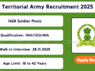 Territorial Army Recruitment 2025: Territorial Army has released a notification at jointerritorialarmy.gov.in for recruitment to the posts of Soldier in multiple states including Tamil Nadu. Interested candidates can attend the walk-in-interview on 01-12-2025 at the specified venues. Candidates must carefully review the Territorial Army notification details, including eligibility, selection process, and application procedure.