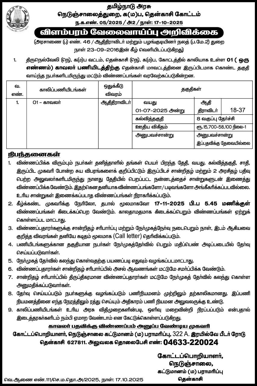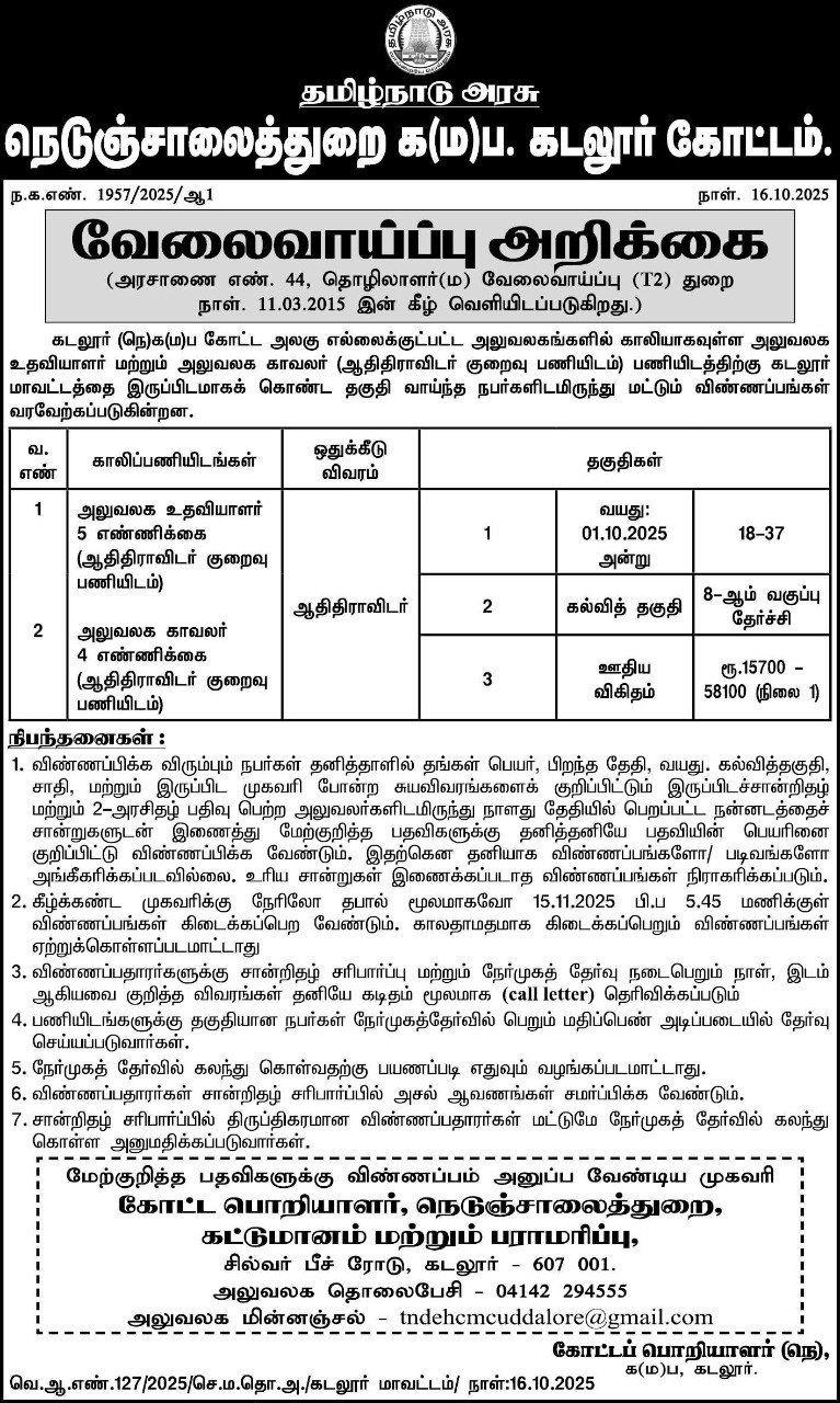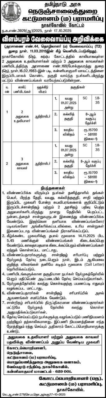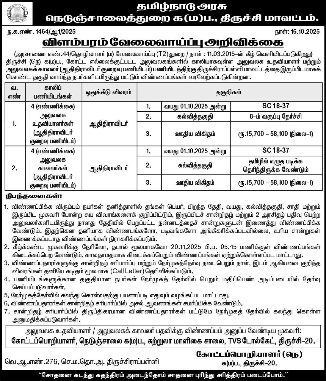 TN Highways Department Recruitment 2025: Tamil Nadu Highways Department has released the recruitment notification to fill the 84 Office Assistant, Driver & Watchman Posts. The application form should be downloaded in PDF format from the Official website @ https://www.tnhighways.tn.gov.in/. Before submitting an application, candidates must carefully read the TN Highways Department 2025 notification and verify their eligibility. Applicants must have a working Email Address and Mobile Number that they maintain until the results are announced.