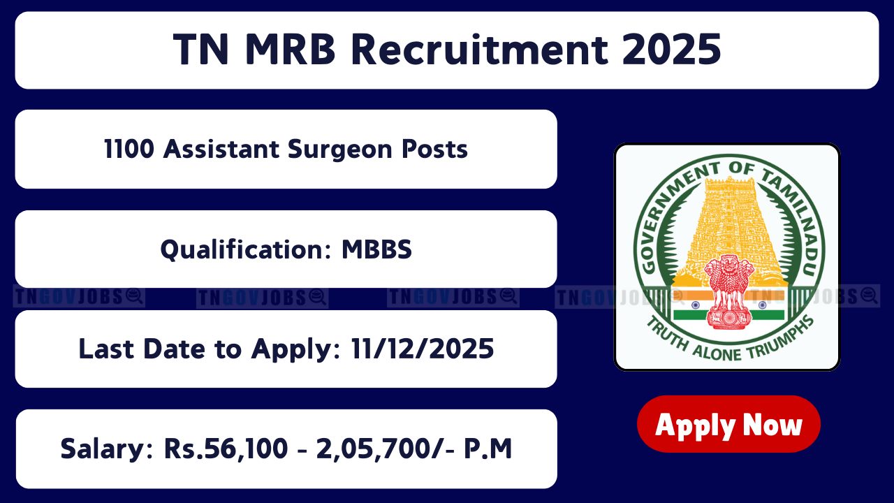 TN MRB Recruitment 2025: 1100 Assistant Surgeon Posts; Apply Now!