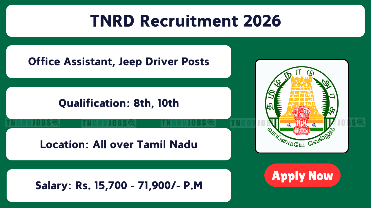 SEO: TNRD Recruitment 2026, Tamil Nadu Rural Development Jobs 2026, TNRD Office Assistant, Jeep Driver & Night Watchman Vacancies — check latest official notifications and district-wise apply links at tn.gov.in .