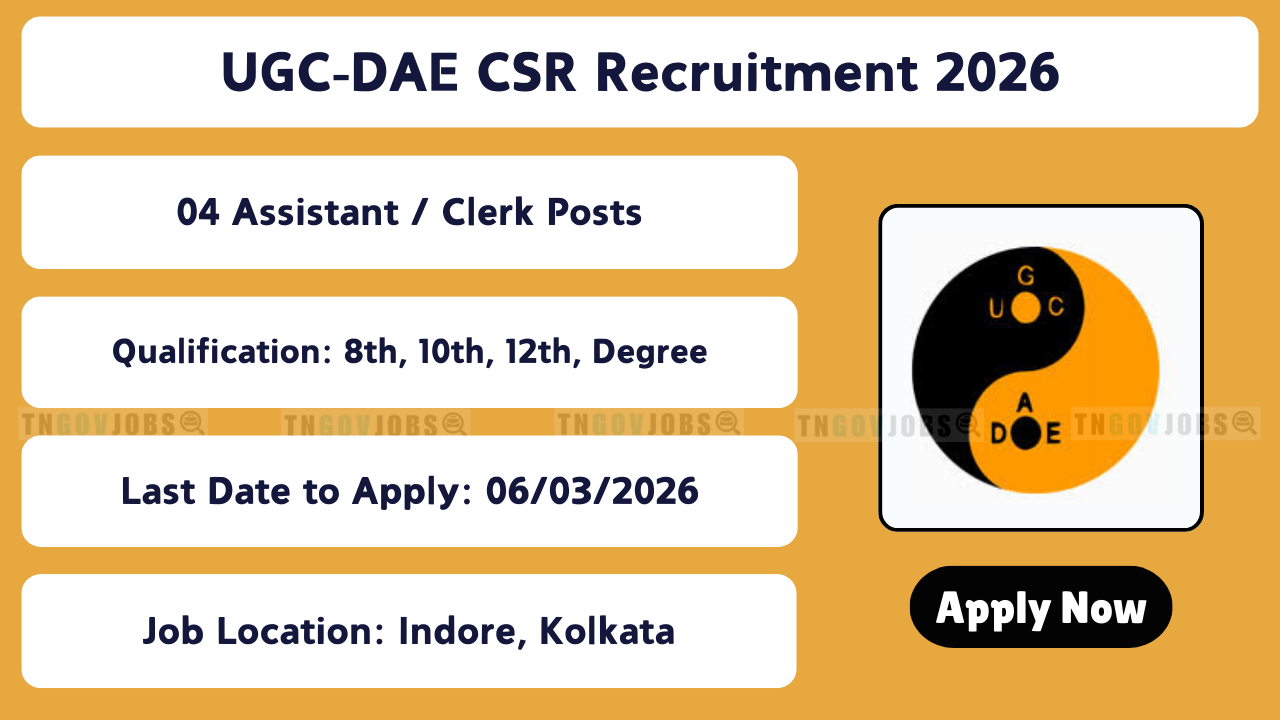 UGC-DAE CSR Recruitment 2026 – 04 Posts (Assistant-II, Assistant-I, Clerk-Typist, Lab Attendant) – Apply Online + Hard Copy