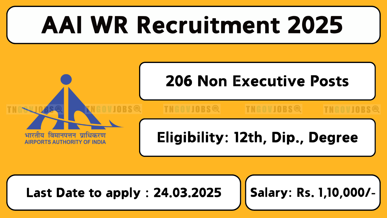 AAI WR Recruitment 2025: Airports Authority of India, Western Region (AAI WR) has announced Notification No: DR-01/02/2025/WR for the recruitment of 206 Senior Assistant and Junior Assistant posts, including Official Language, Operations, Electronics, Accounts, and Fire Services. The online application process will be open from 25-Feb-2025 to 24-Mar-2025 on the official website aai.aero.