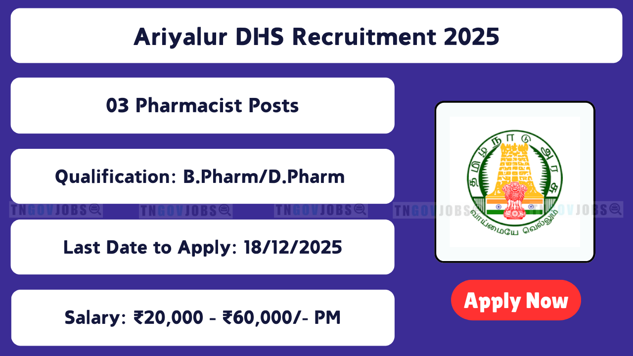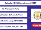 Ariyalur DHS Recruitment 2025: District Health Society Ariyalur has released notification for 03 Contract Posts (Unani Doctor, Yoga Professional, Pharmacist). Apply Offline before 18-12-2025. No Application Fee!