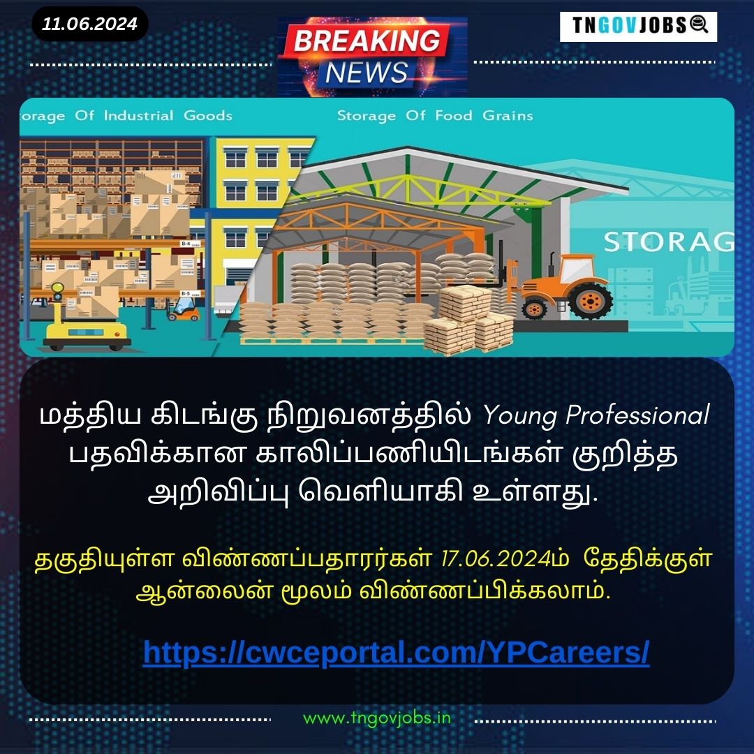 CEWACOR Recruitment 2024 : Central Warehousing Corporation (CEWACOR) invites Online Application for Recruitment to the Post of Young Professional in Ahmedabad – Gujarat, Chennai – Tamil Nadu, Bhopal – Madhya Pradesh, Jaipur – Rajasthan, Kolkata – West Bengal, Lucknow – Uttar Pradesh, Mumbai – Maharashtra, Delhi – New Delhi.. Eligible candidates can Apply Online on or Before 17.06.2024.