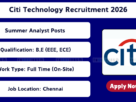 Citi Technology Summer Analyst 2026 Campus Hire – Chennai – Apply Now