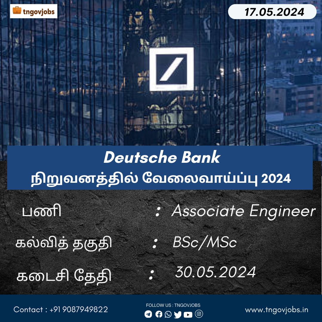 Deutsche Bank Recruitment 2024 : Deutsche Bank invites Online application for Recruitment to the Post of Associate Engineer in Pune. Interested candidates can Apply Online on or Before30.05.2024.