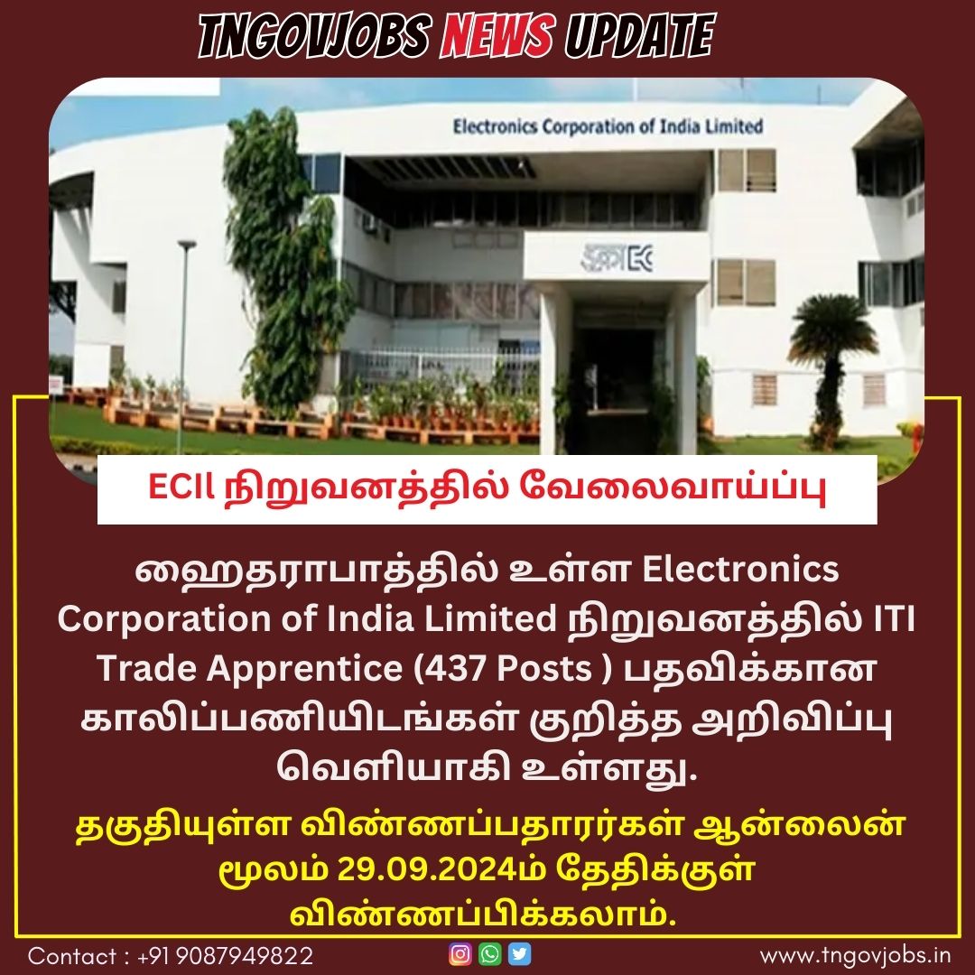 ECIL Recruitment 2024: Electronics Corporation of India Limited (ECIL) invites Online application for recruitment to the Post of ITI Trade Apprentice in Hyderabad – Telangana. Eligible candidates can apply Online on or before 29.09.2024.