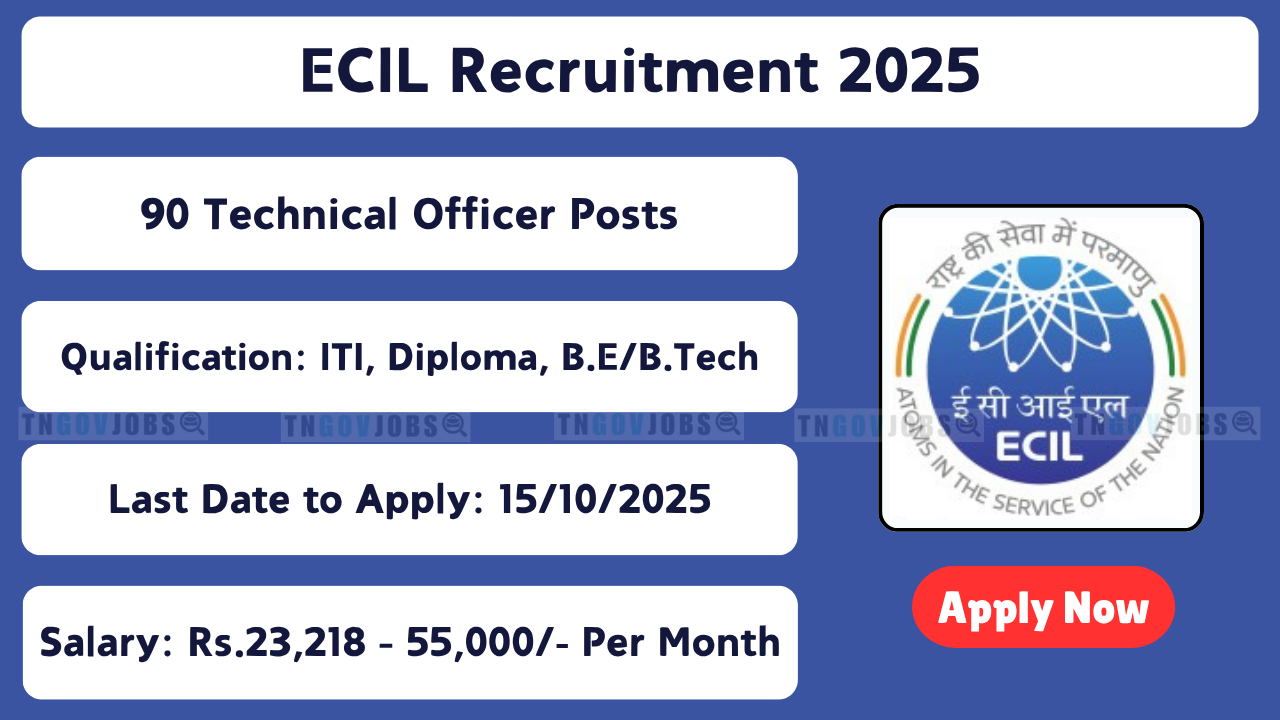 ECIL Recruitment 2025: Electronics Corporation of India Limited (ECIL) has released Notification No. 18/2025 dated 09-10-2025 to fill 90 posts including Project Engineer, Technical Officer, Assistant Project Engineer, Senior Artisan, and Junior Artisan. Eligible candidates can apply offline by attending walk-in interviews on 15-10-2025, 16-10-2025, 17-10-2025, or 18-10-2025 with a duly filled application form downloaded from www.ecil.co.in. Candidates must carefully read the ECIL Technical Officer 2025 notification and verify their eligibility before applying. Applicants must maintain a working Email Address and Mobile Number until the ECIL Recruitment 2025 results are announced.