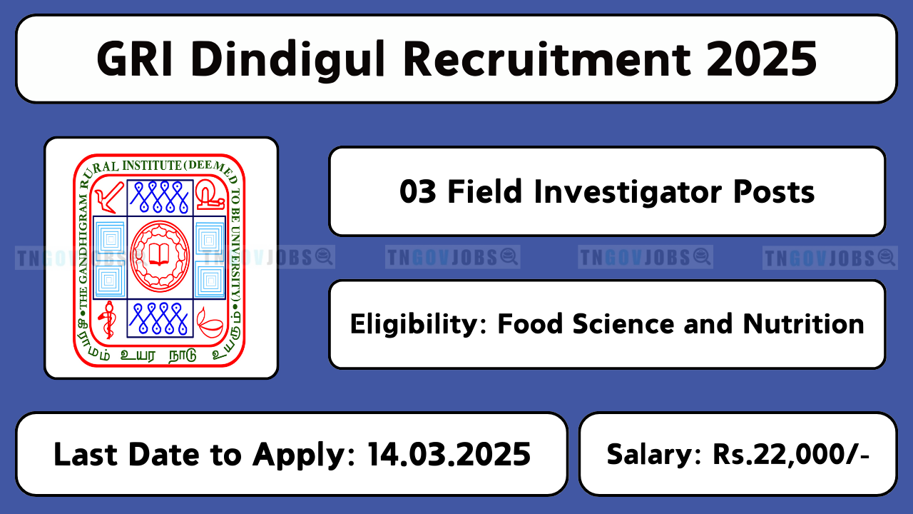 GRI Dindigul Recruitment 2025: 03 Field Investigator Posts; Apply Now!