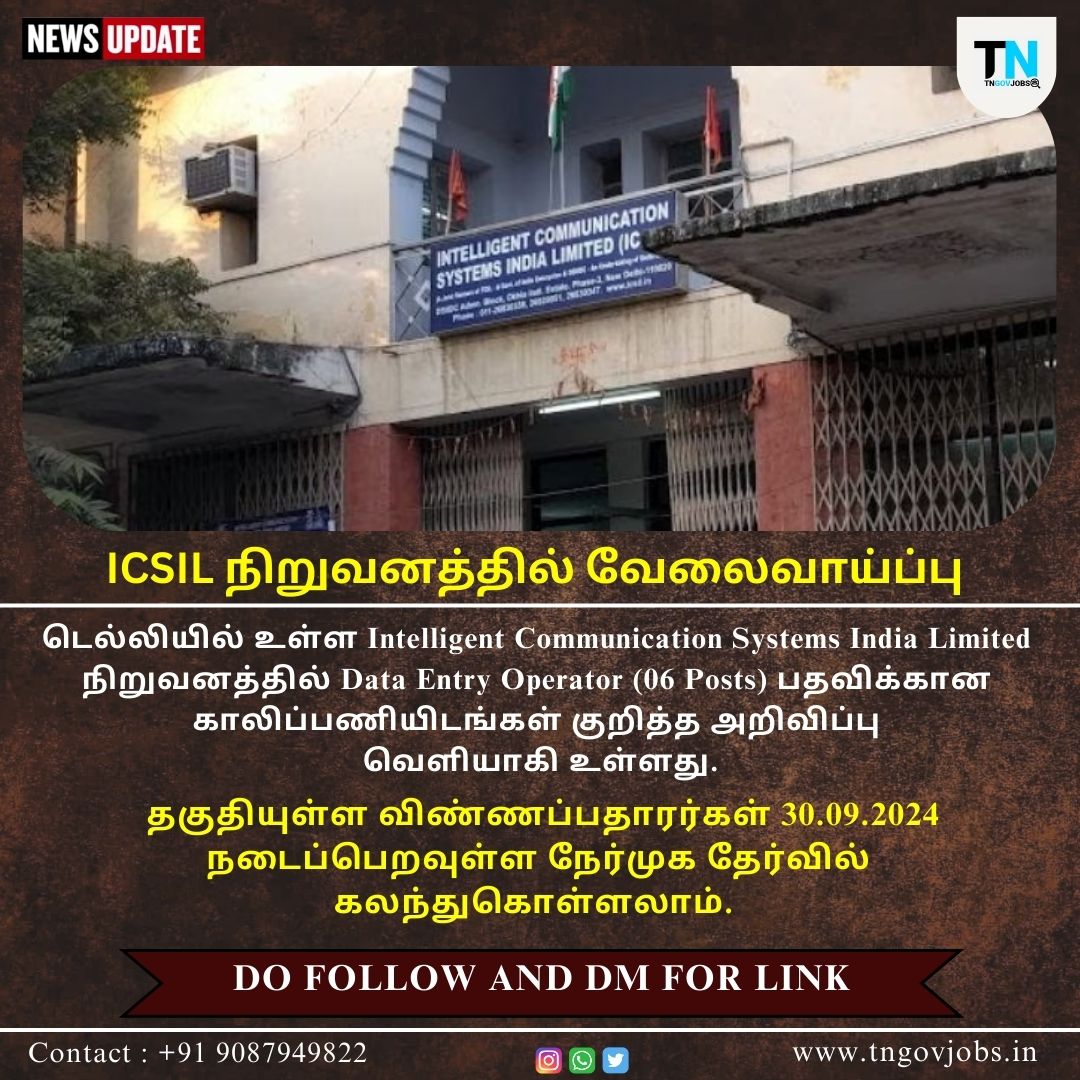 ICSIL Recruitment 2024: Intelligent Communication Systems India Limited (ICSIL) invites Online Application for recruitment to the Post of Data Entry Operator in Delhi – New Delhi. Eligible candidates can Attend Walk-in on 30.09.2024.
