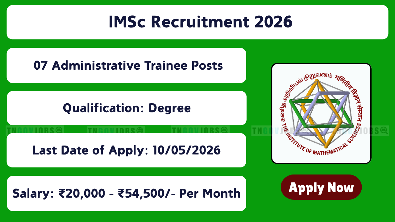 IMSc – Institute of Mathematical Sciences has released Notification No. 01-RIIMSc/2026 to recruit 07 Project Associate, Project Assistant, Administrative Trainee and System Trainee posts in Chennai.