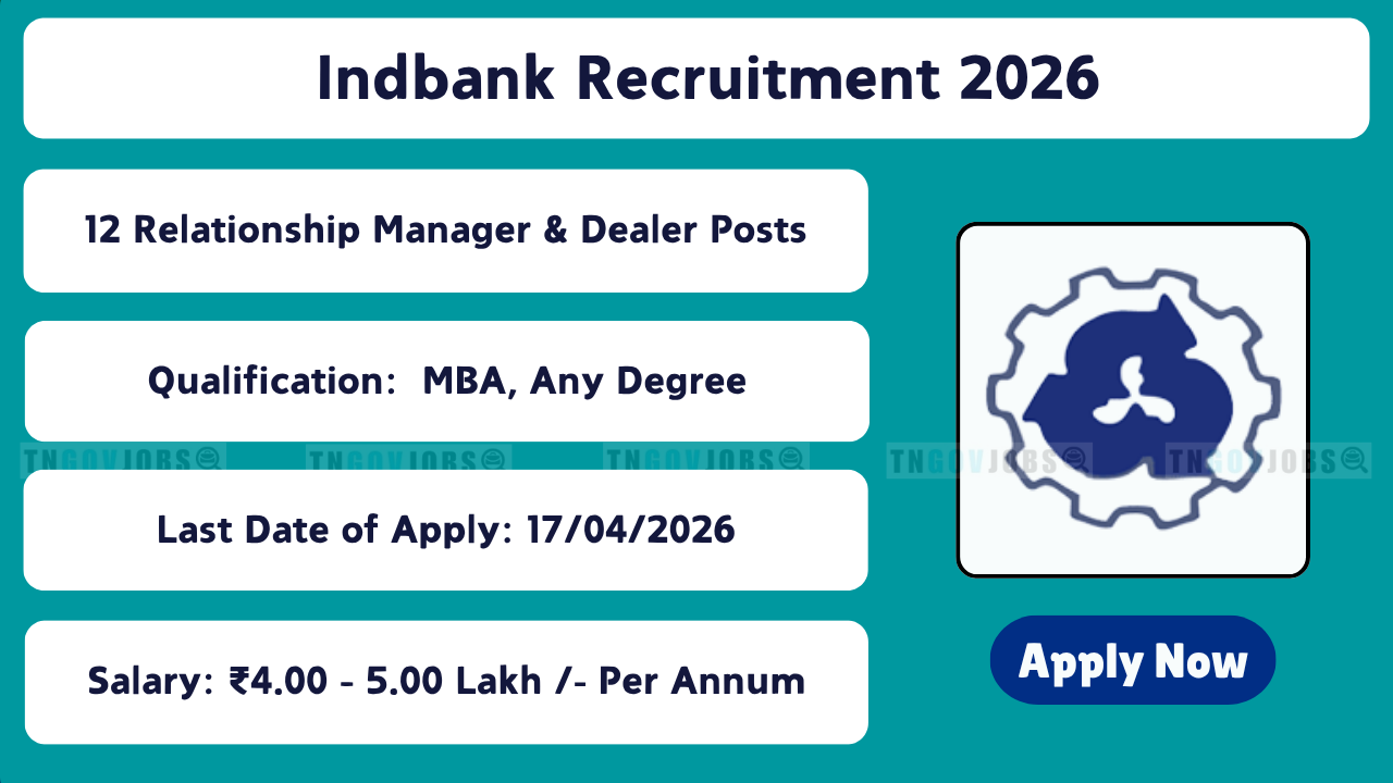 Indbank Recruitment 2026 – 12 Relationship Manager & Dealer Posts | Offline Application
