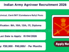 Indian Army Agniveer Recruitment 2026 – Quick Summary