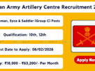 Indian Army Artillery Centre Recruitment 2026 – Vacancy Details
