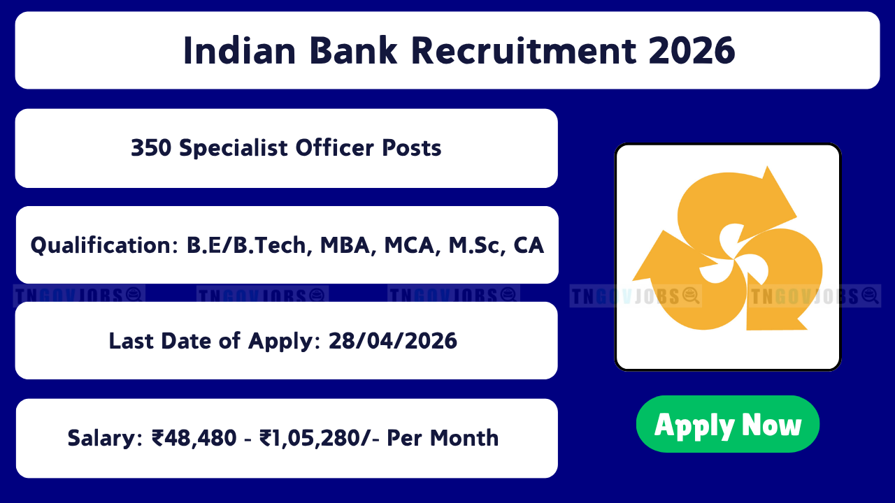 Indian Bank SO Recruitment 2026 – 350 Specialist Officer Posts | Detailed Vacancy & Eligibility