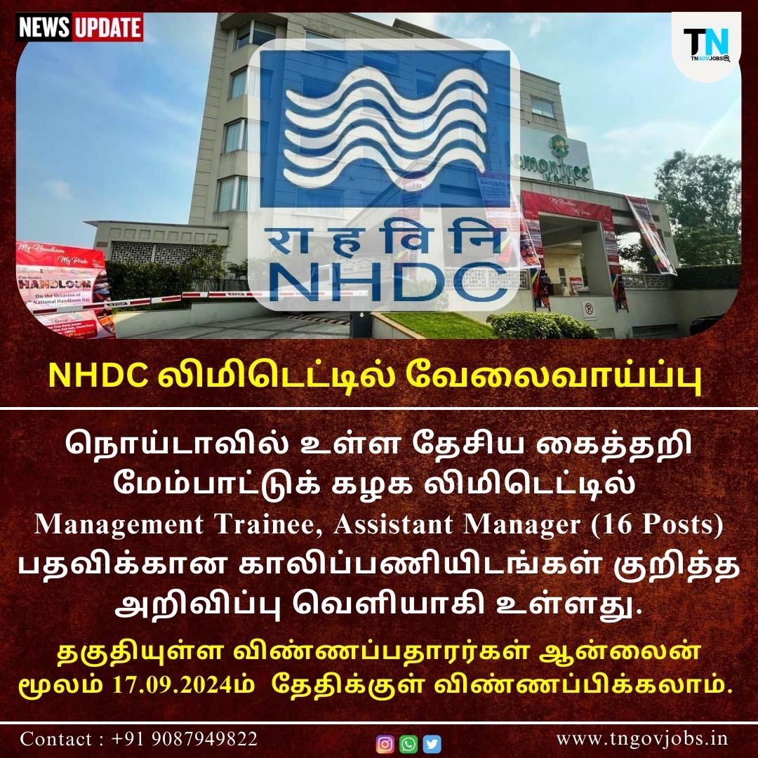 NHDC Recruitment 2024 : National Handloom Development Corporation Limited (NHDC) invites Online Application for Recruitment to the Post of Management Trainee, Assistant Manager, Chief Manager, DGM & Executive Director in Noida. Eligible candidates can Apply Online on or before 07.09.2024.