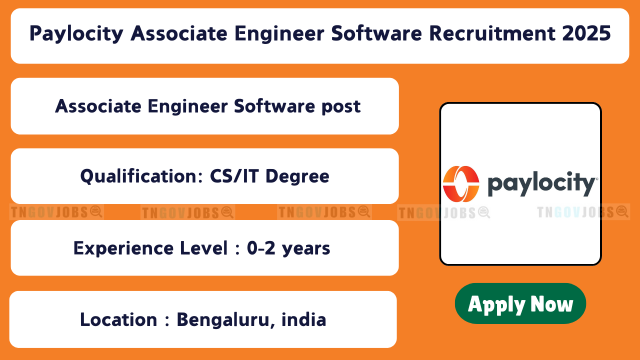 Paylocity (Airbase) Recruitment 2025 – Associate Engineer Software: Paylocity is hiring Associate Engineer Software (Entry-Level) – Fully Remote (Bengaluru, India). Launch your career in cloud-based HR & payroll software development!