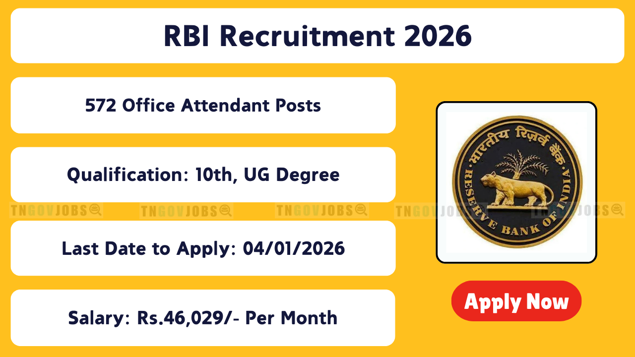 Attendant posts. The online application process will be available on the official website https://opportunities.rbi.org.in/ from 15 January 2026 to 04 February 2026. Candidates are advised to carefully read the