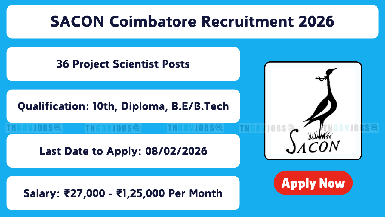 SACON Coimbatore Recruitment 2026 – 36 Project Scientist, Project Associate, Project Assistant, Senior Project Manager & Other Posts – Apply Online