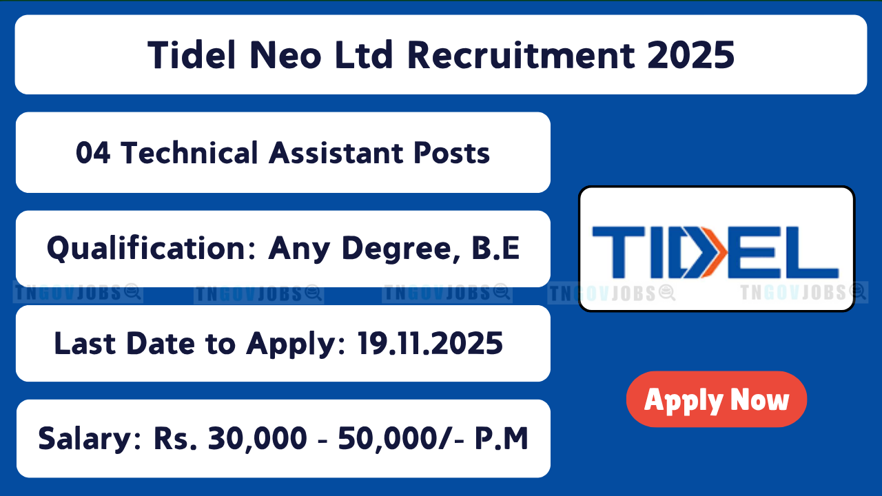 TIDEL Neo Ltd Recruitment 2025: 04 Technical Assistant Posts; Apply Now!