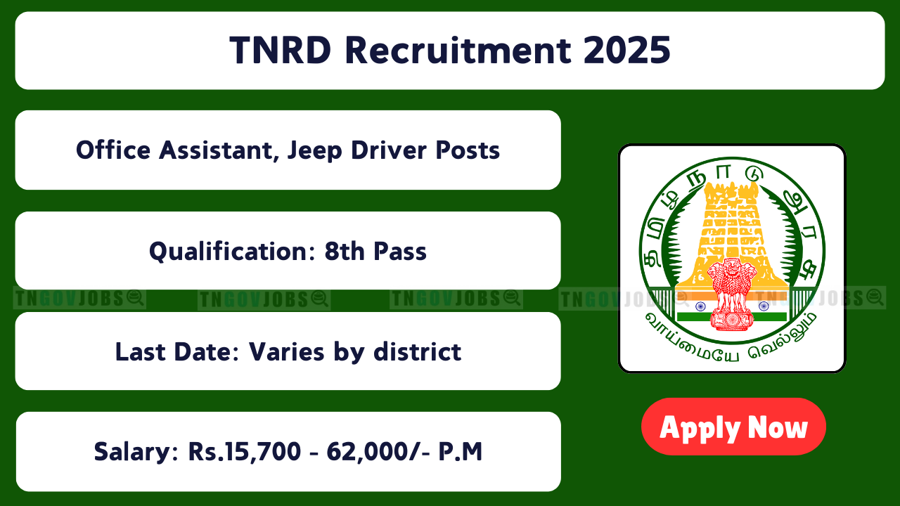 SEO: TNRD Recruitment 2025, Tamil Nadu Rural Development Jobs 2025, TNRD Office Assistant, Jeep Driver & Night Watchman Vacancies — check latest official notifications and district-wise apply links at tn.gov.in .