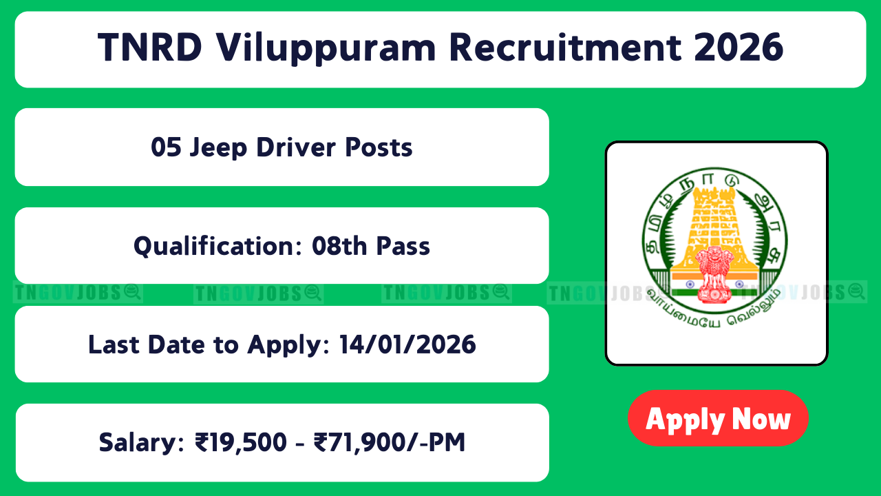 TNRD Viluppuram Recruitment 2025: Tamil Nadu Rural Development & Panchayat Raj Department Viluppuram has released notification for 05 Jeep Driver Posts. Apply Offline before 14-01-2026. Application Fee ₹50/-!