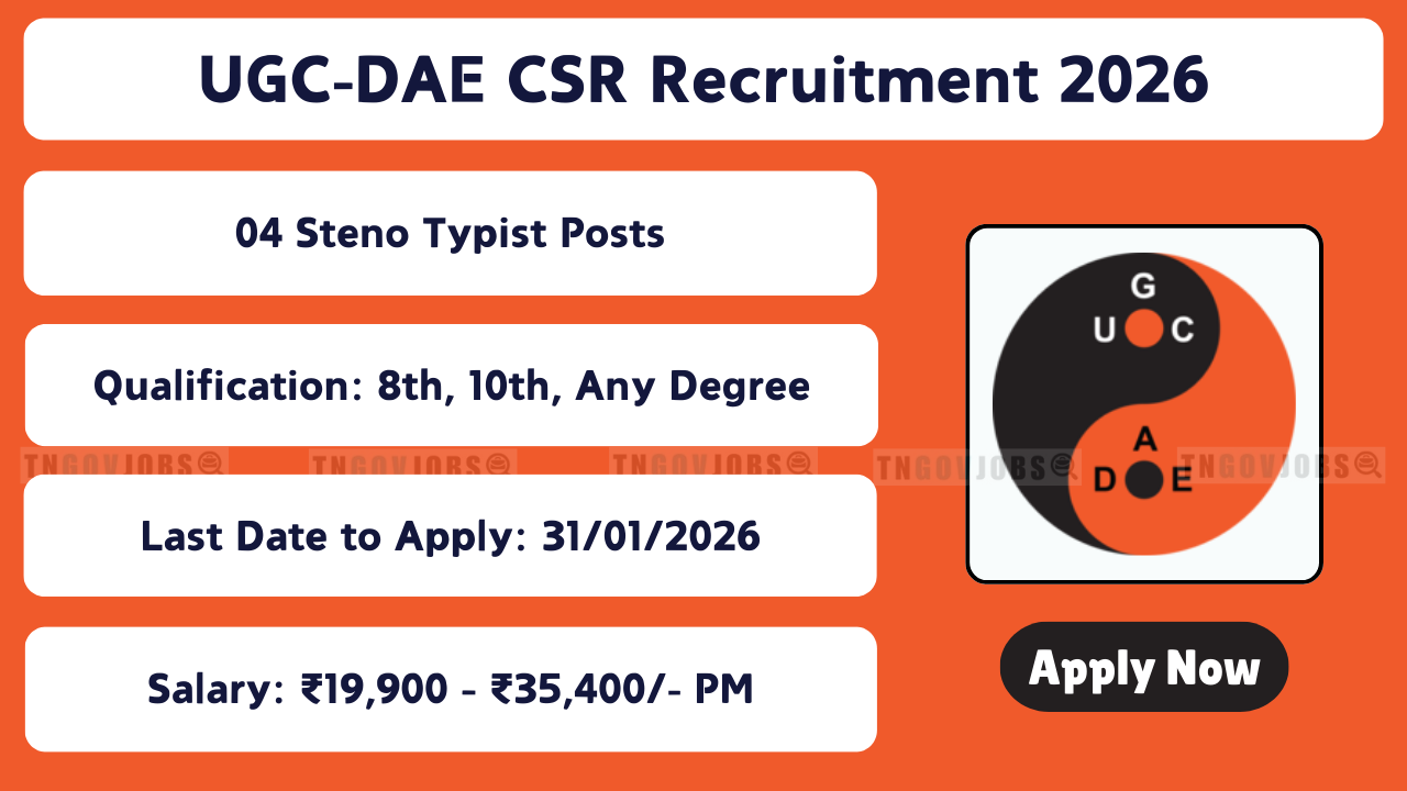 UGC-DAE CSR Recruitment 2026: 04 Steno Typist Posts; Apply Now!